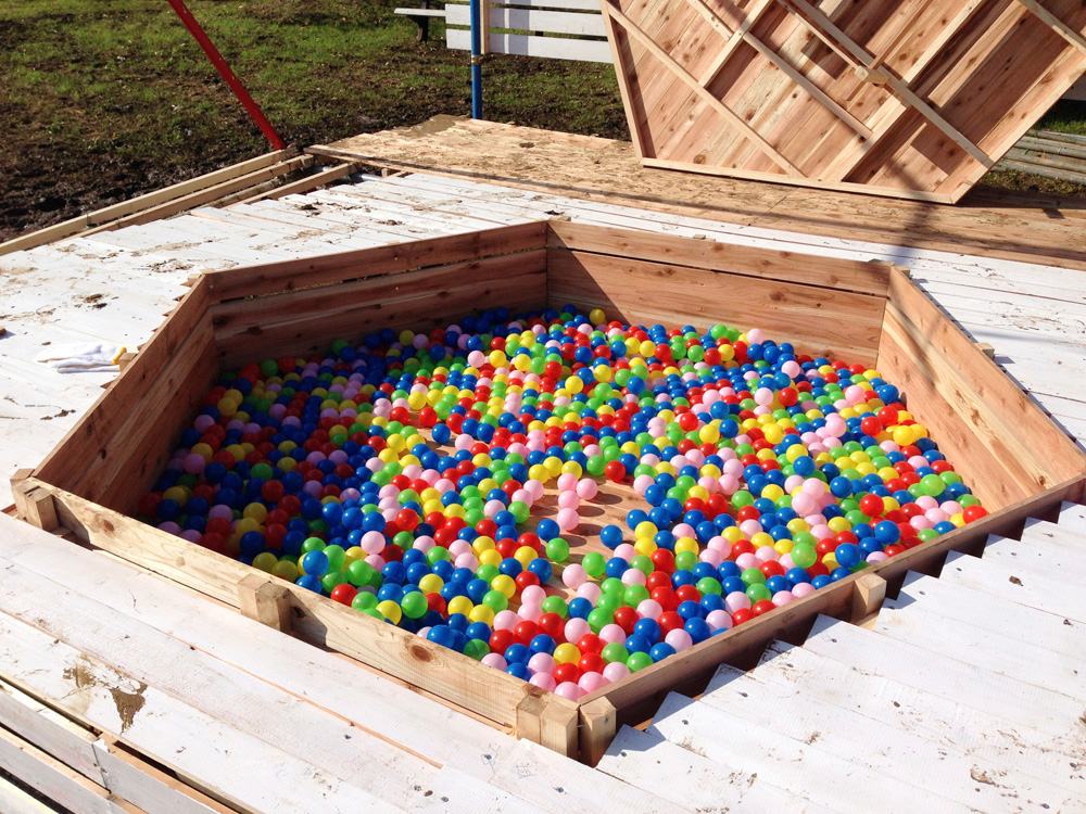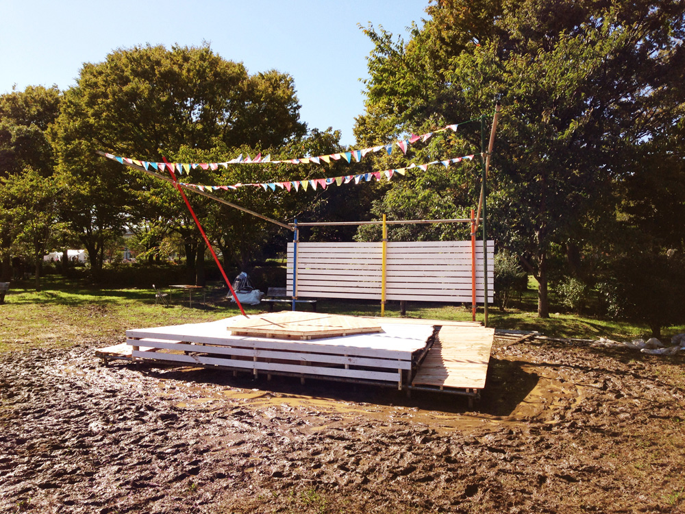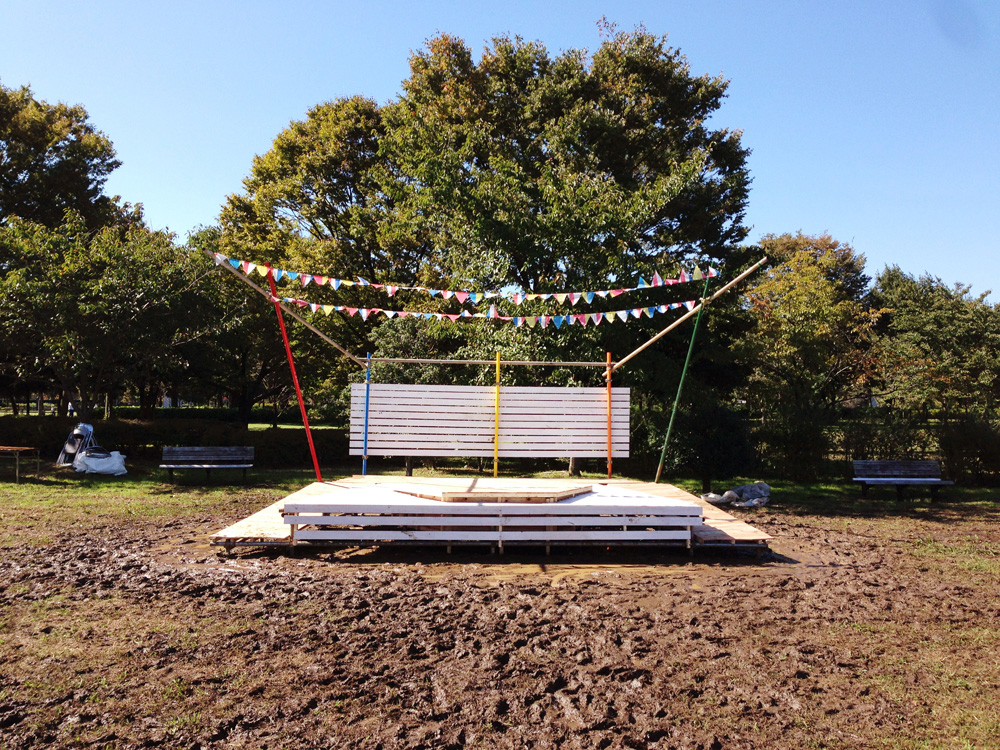 年に一度、舎人公園(東京都足立区)で行われるイベント「トネリコフェスティバル」のために制作されたサブ・ステージです。「こどもと、こどもが、こどもも一緒に楽しめる」をテーマに、地域の方々、あるいは親子で触れ合う機会を提供することを目的とした子供を主体としたイベントです。デザインコンセプトは「音楽×遊び場」とし、ミュージックバンドの演奏時間以外は子供たちの遊び場となるようボールプールと音楽ステージを掛け合わせたデザインとなっています。