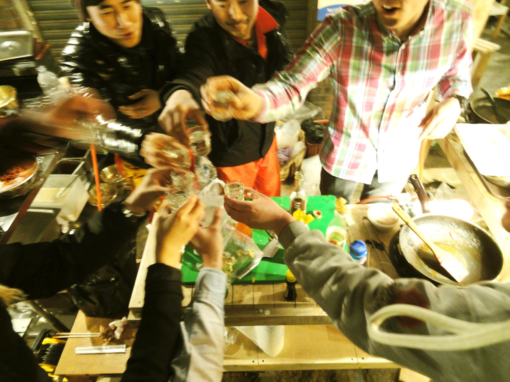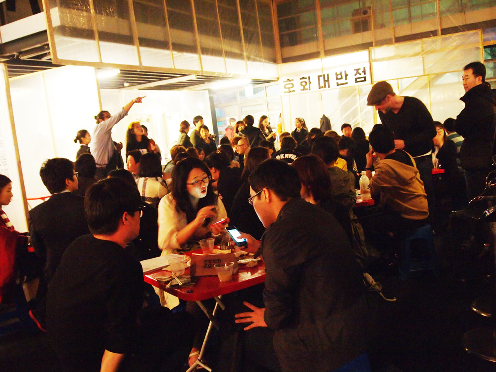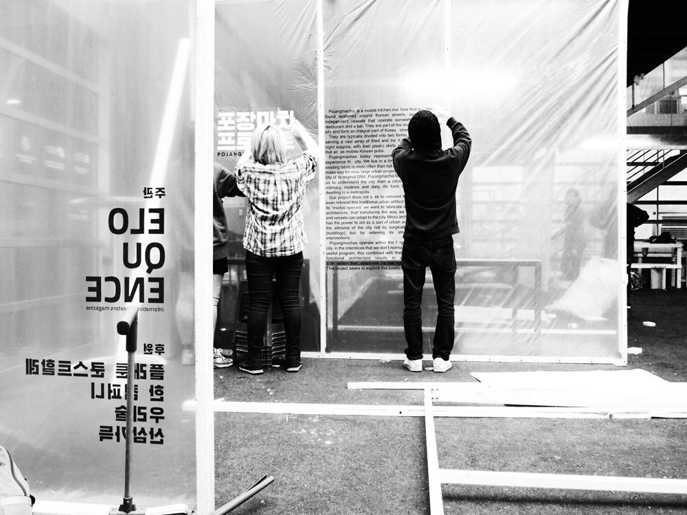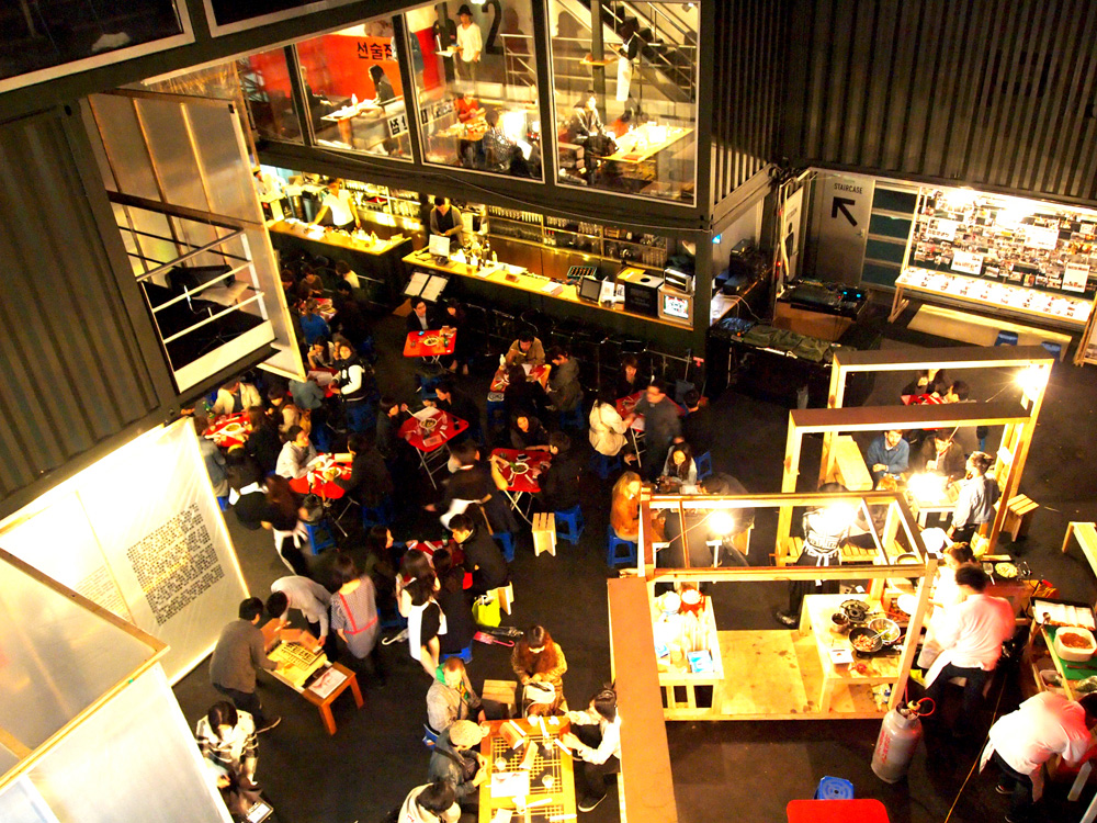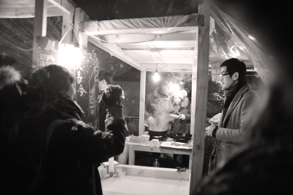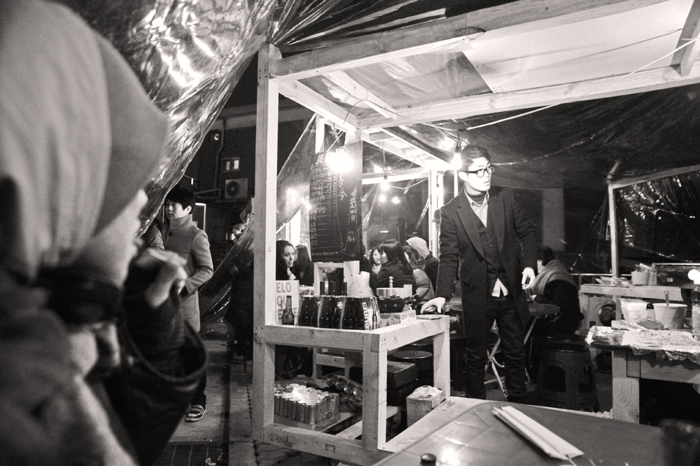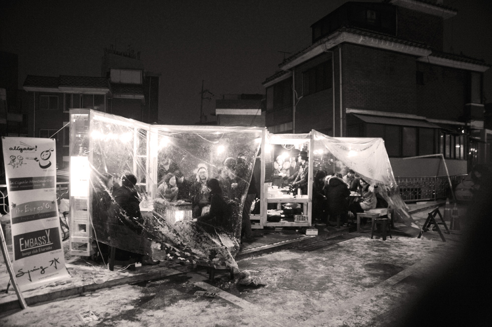 Pojangmacha, is a mobile kitchen machine that is commonly found scattered around Korean streets, acting as small independent vessels that operate somewhere between a restaurant and a bar. They are part of the invisible fabric of the city and form an integral part of Korean street life. They are typically divided into two forms, the wagons that operate during the day, serving a vast array of fried and traditional dishes and the night wagons with their plastic skirts and dodgy light fittings that act as mobile korean pubs.