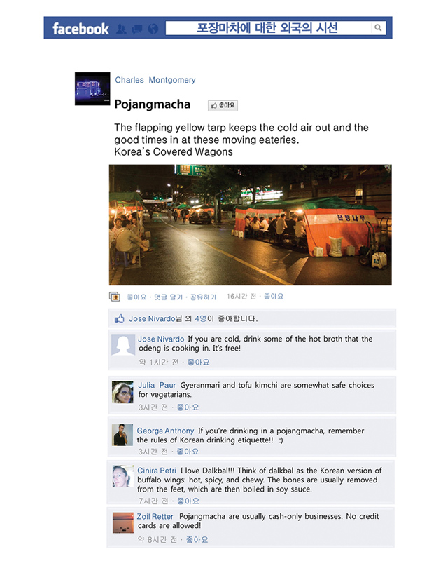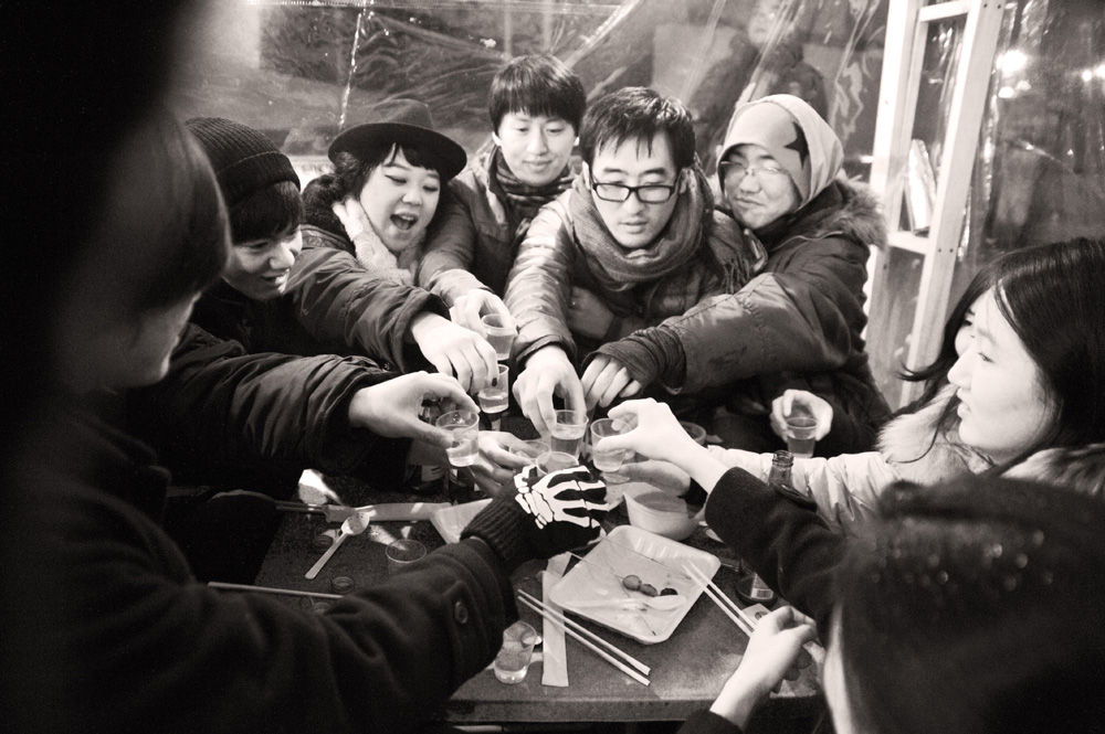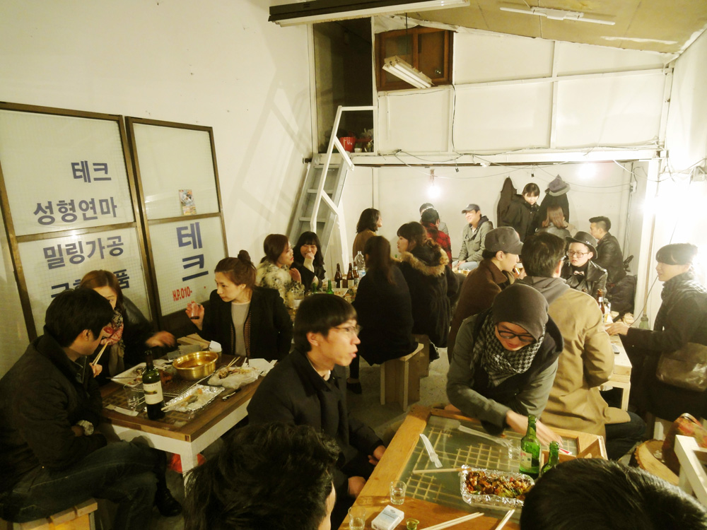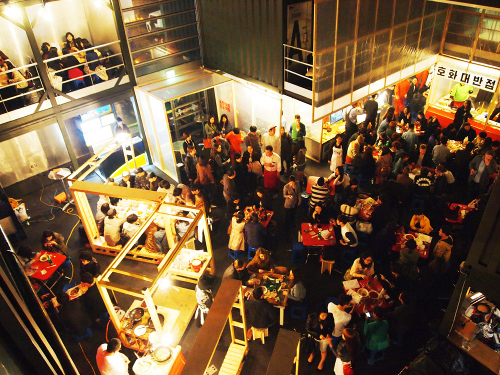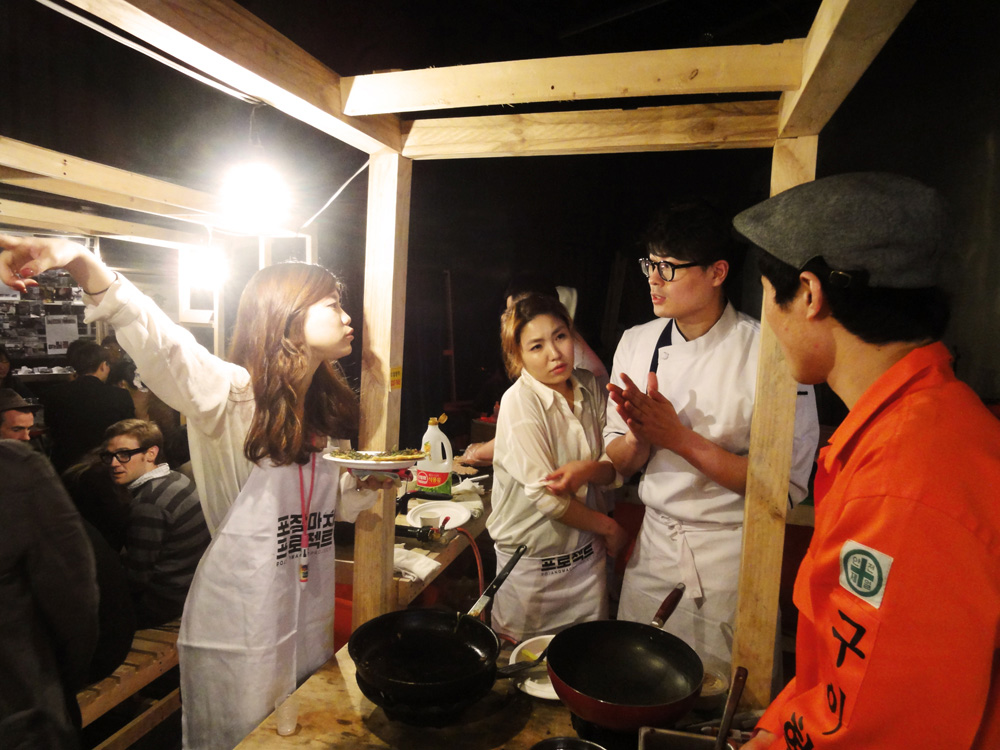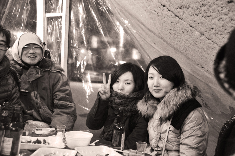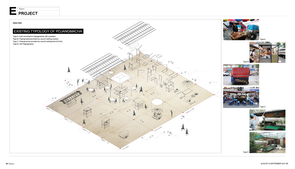Pojangmacha, is a mobile kitchen machine that is commonly found scattered around Korean streets, acting as small independent vessels that operate somewhere between a restaurant and a bar. They are part of the invisible fabric of the city and form an integral part of Korean street life. They are typically divided into two forms, the wagons that operate during the day, serving a vast array of fried and traditional dishes and the night wagons with their plastic skirts and dodgy light fittings that act as mobile korean pubs.