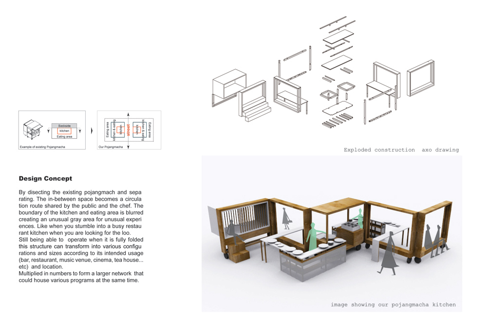Our project does not seek to reinvent the Pojyanmacha or even rebrand this traditional urban artifact; rather by analyzing its "modus preradi" we want to fabricate a new form of micro architecture, that transforms the way we concieve buildings and vessels can adapt to the city. Micro architecture in our view has the power to act a sort of urban acupuncture, treating the ailments of the city not by surgically removing organs (buildings) but by relieving its stresses via precise interventions.