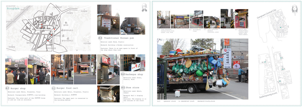 This is urban research for collecting urban objects (A. Mermaid architecture B. Drifting objects C. Isolating objects).